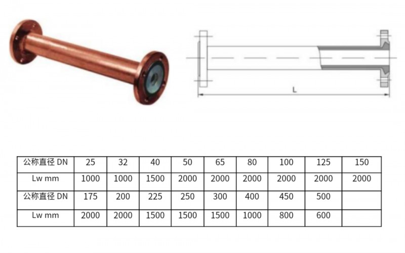 鋼襯玻璃管道有標準100mm,200mm,300mm,500mm,1000mm,1500mm,2000mm。也可以按照客戶需要加工尺寸和各種異型管件。